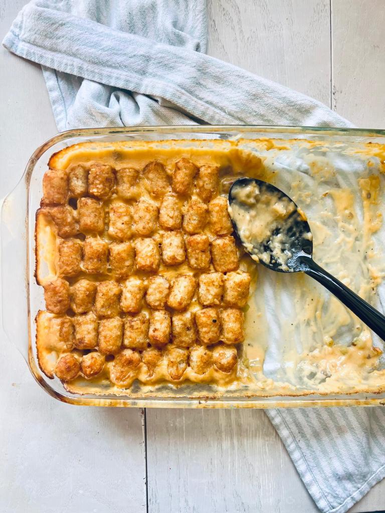 Enough frozen tater tots to cover the top of whatever size pan you use. I used a 9×13 casserole dish.